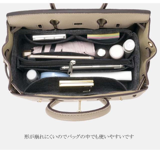 | エルメスのサイズにピッタリフィットするようにインナーバッグ 軽くて丈夫なフェルト素材で、利便性の高さはもちろん、バッグの型崩れ防止にも! 形が崩れにくいのでバッグの中でも使いやすいです 小物や財布、鍵、コスメや定期など取り出しやすく、見つけやすい 女性のバッグの中は、何かと物が多く、小物の収納に困ってる方にお勧めのバックインバック | |