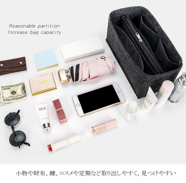 送料無料 バックインバック バックインバッグ 軽量 インナーバッグ 仕切り 大容量 インナーポケット フェルト 自立 化粧品 かばん 収納 整理 小物収納 レディース 型崩れ防止 小物入れ かわいい 人気 ギフト