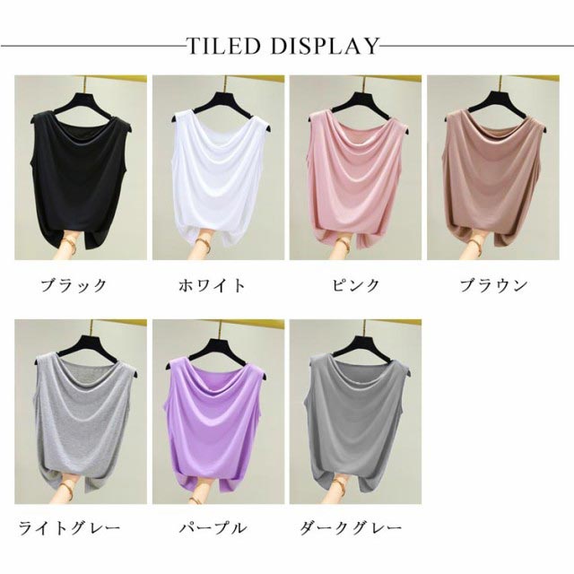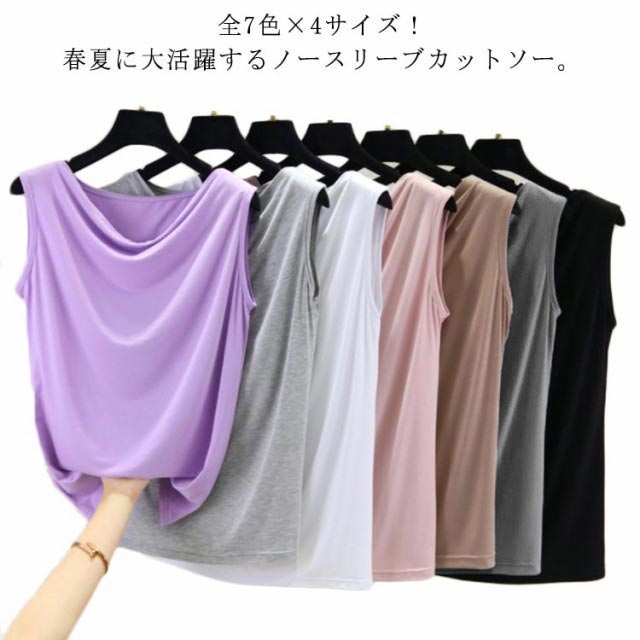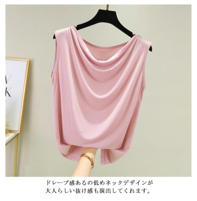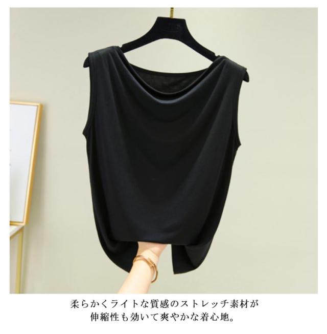 ノースリーブtシャツ ノースリーブカットソー 送料無料 トップス タンクトップ 薄手 カットソー トップス ノースリーブ レディース ストレッチ 伸縮性 シンプル 無地 夏 インナー 大きサイズ ドレープ