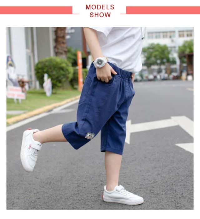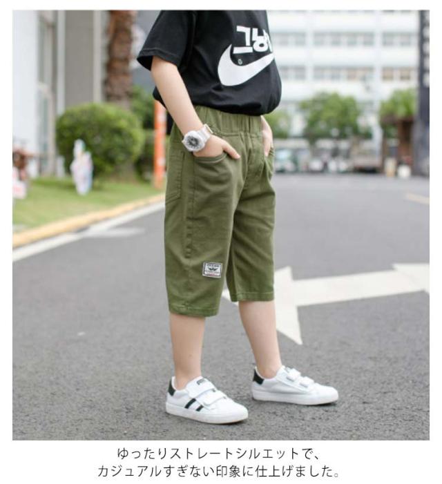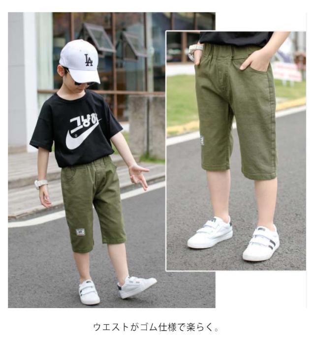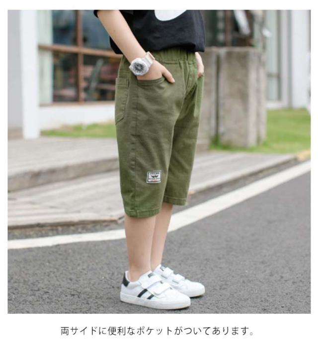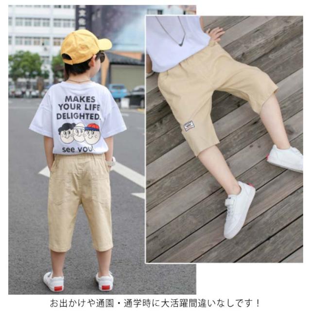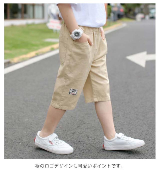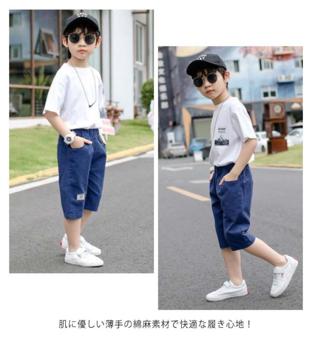 パンツ 男の子 キッズ 七分丈パンツ クロップドパンツ ショートパンツ ハーフパンツ 綿麻 薄手 カジュアルパンツ ゆったり ウエストゴム 無地 ボトムス 子供服 ジュニア 小学生 中学生 膝下 クロップド ズボン 夏 シンプル 通学 お出かけ 110-170 送料無料