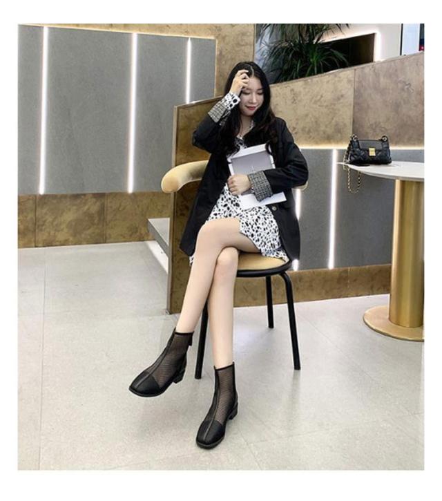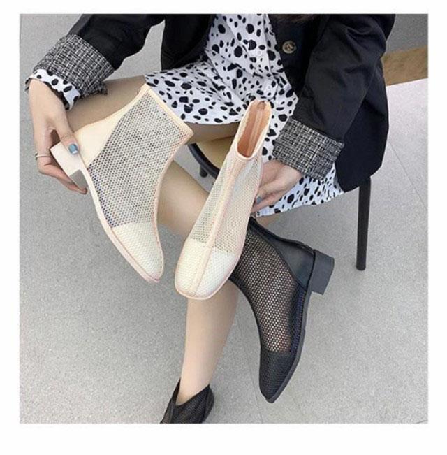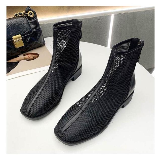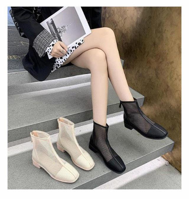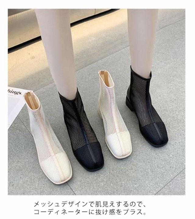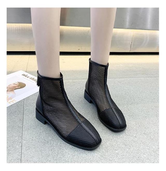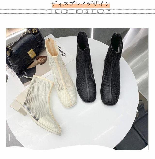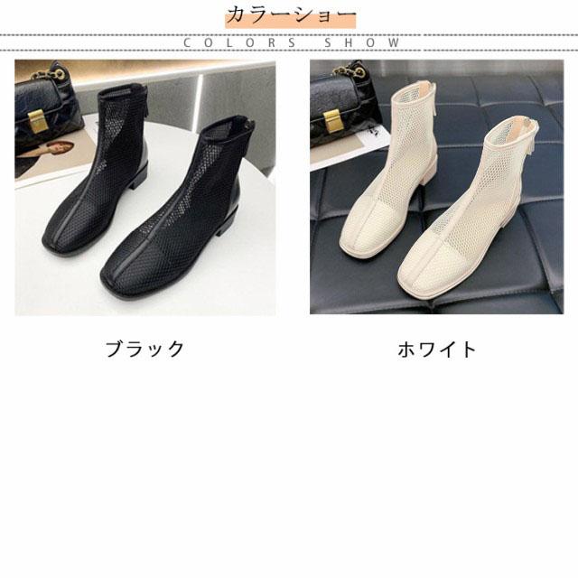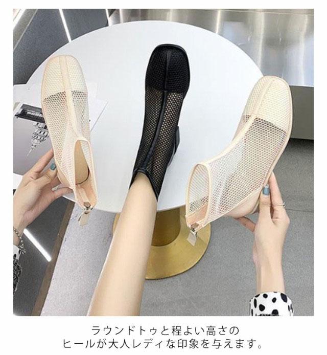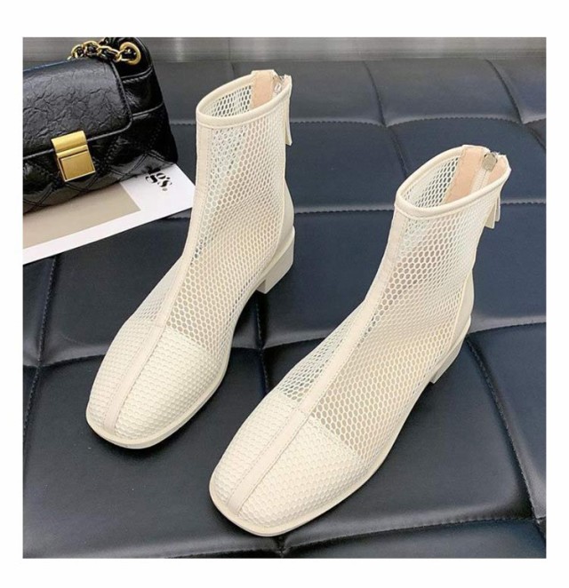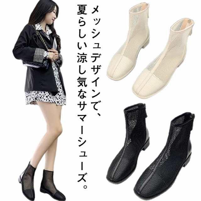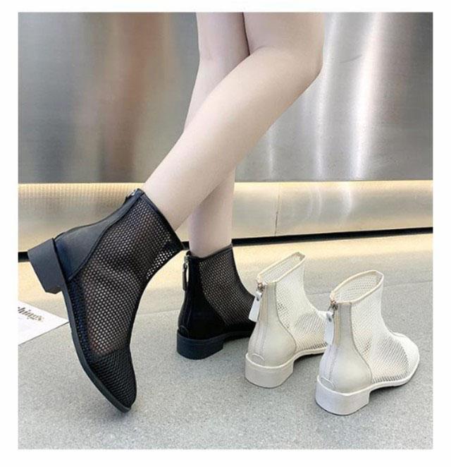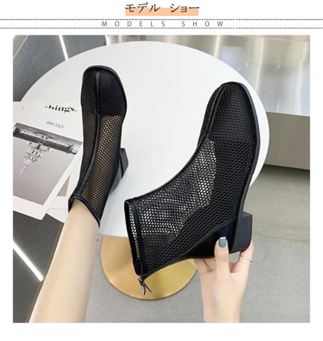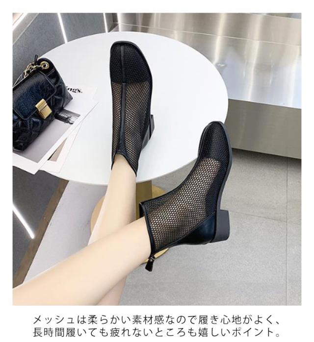 メッシュブーツ ショートブーツ レディース サマーブーツ 透け感 シースルー シアー シューズ メッシュ 靴 ローヒール 3cmヒール ラウンドトゥ 歩きやすい 疲れない 痛くない 軽い 軽量 春夏 バックジッパー フェミニン きれいめ カジュアル シンプル 美脚 20代 30代 40代