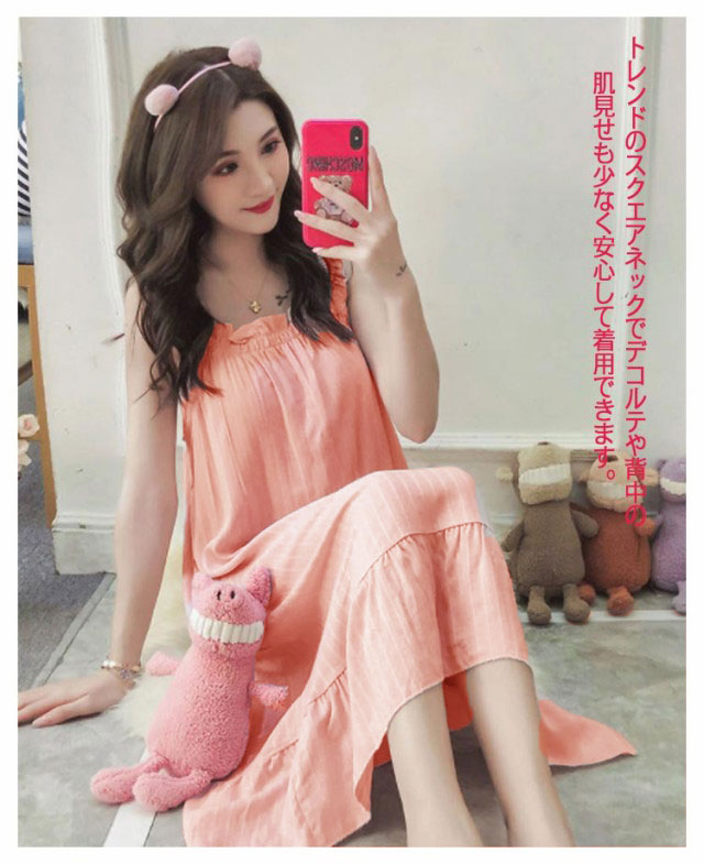 ワンピース タンクトップ ルームウェア パジャマ 綿 スクエアネック カップなし レディース 女の子 ロング キャミソール ナイトブラ ノンワイヤー 部屋着 無地 かわいい 20代 30代 40代 50代 大きいサイズ【送料無料】