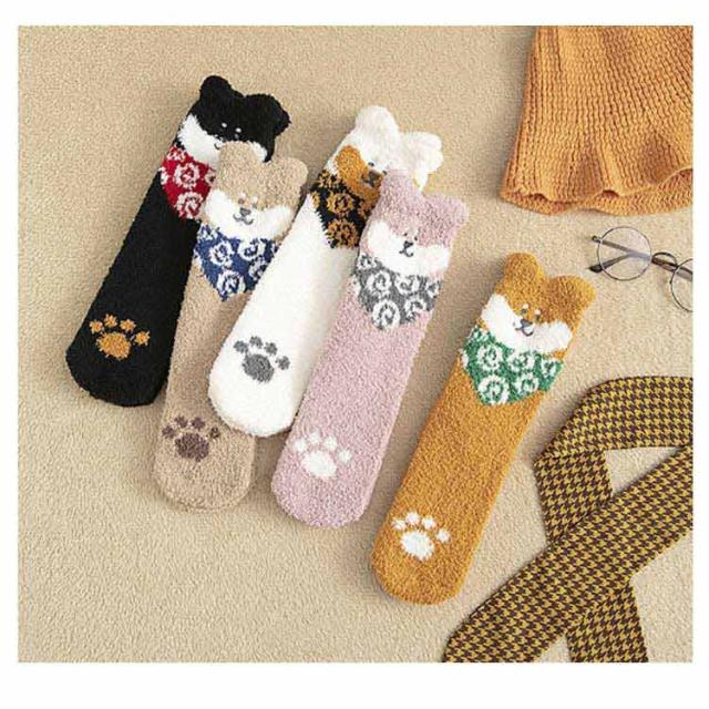 | ふわふわ素材で足元ぽかぽか! かわいい柴犬に癒される柔らかなルームソックス。 大人用フリーサイズで寒い日の冷え対策に。 おうち時間も楽しく過ごせます♪ | |