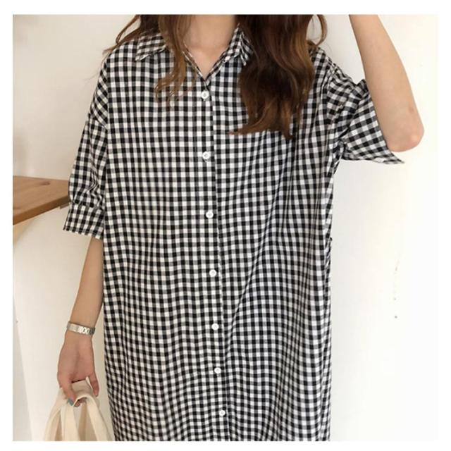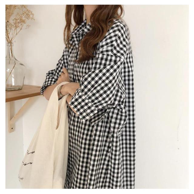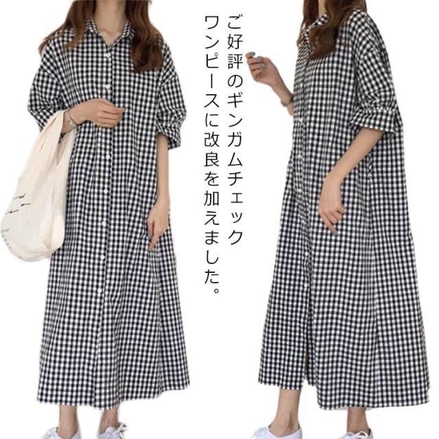 S〜XL ワンピース 大人 チェックワンピース 送料無料 スキッパーシャツワンピース ギンガムチェック Wガーゼ 大きいサイズ ナチュラル 春 ゆったり 綿 コットン チェック柄 秋 レディース マタニティ オリジナル