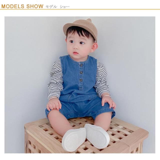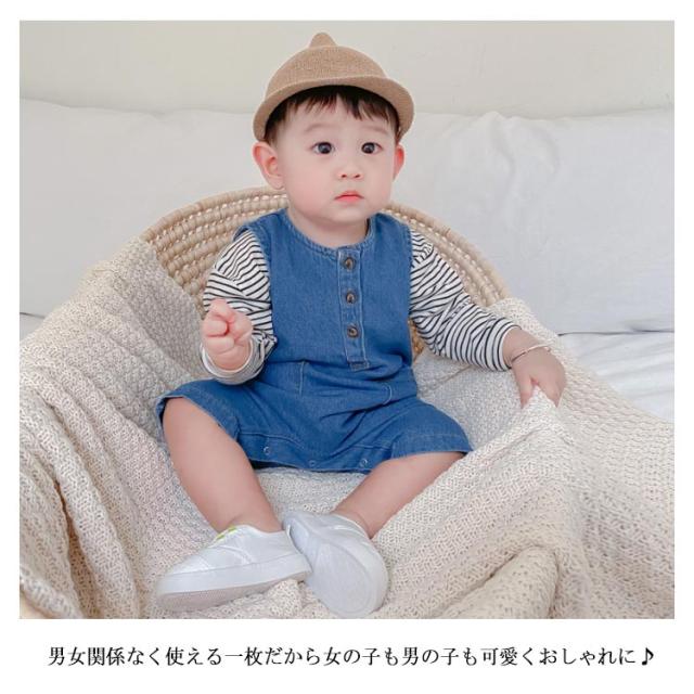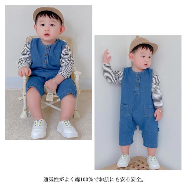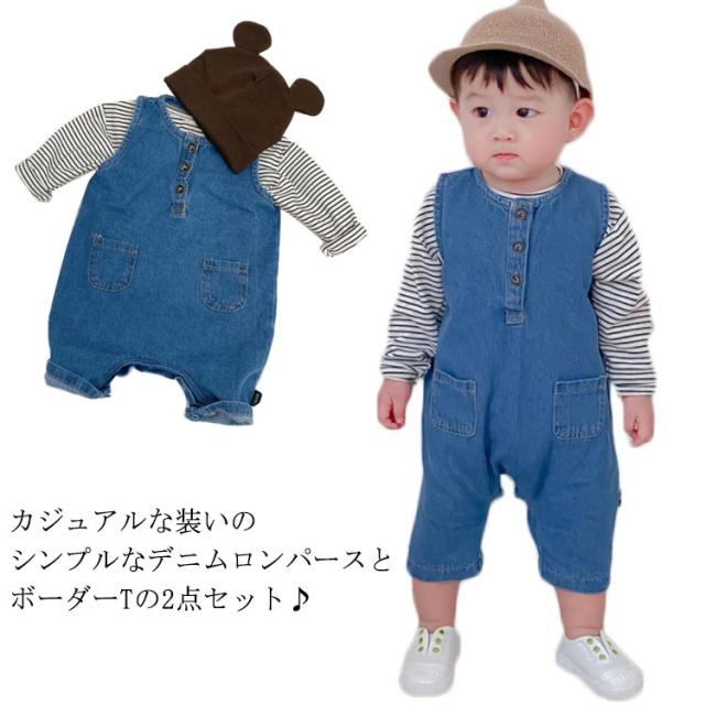 デニムロンパース ボーダーtシャツ 2点セット送料無料 ベビーオールインワン ベビー服 キッズ ベビーロンパース デニム 女の子 男の子 兄妹服 可愛い シンプル カジュアル 男女兼用 赤ちゃん服 春 夏 秋 冬 60 70 80 90 100