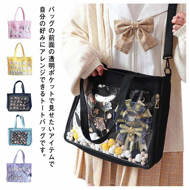 痛バッグ 透明バッグ ショルダーバッグ トートバッグ ショルダー 見せバッグ 通勤 通学 大きめ かばん 韓国ファッション 痛バ 透明 クリアバッグ