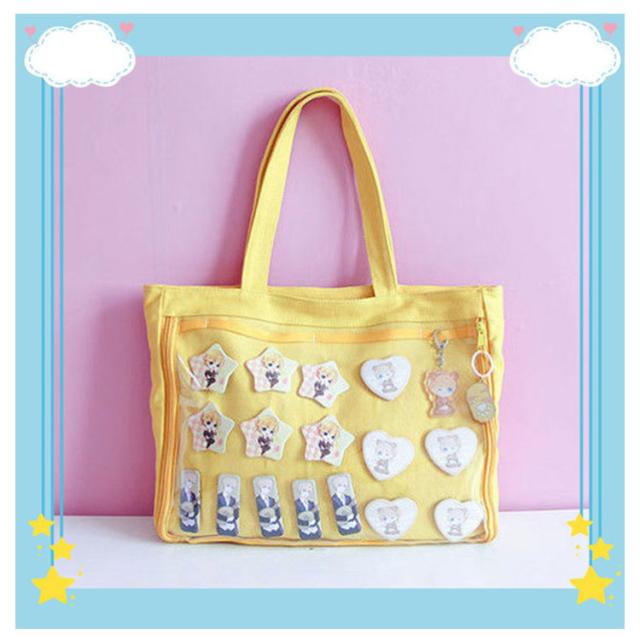 | バッグの前面の透明ポケットで見せたいアイテムで自分の好みにアレンジできるトートバッグです。 好きな芸能人やアニメキャラの写真、缶バッジ、ストラップ、ぬいぐるみ、萌グッズなど入れて一目瞭然です。 シンプルなデザインで、男女問わずご使用いただけます。イベント時はもちろん、普段使いにも活躍。 ショルダー、トートと二通りの使い方ができて便利です。 材質:キャンバス/塩化ビニル 手触りが良くて、耐久性に優れます。 ※このリンクはバッグだけ売っています。ストラップや飾り物は贈り物ではなく、自分で買いますよ | |