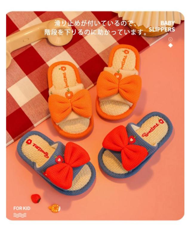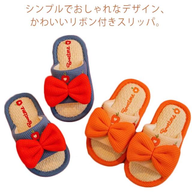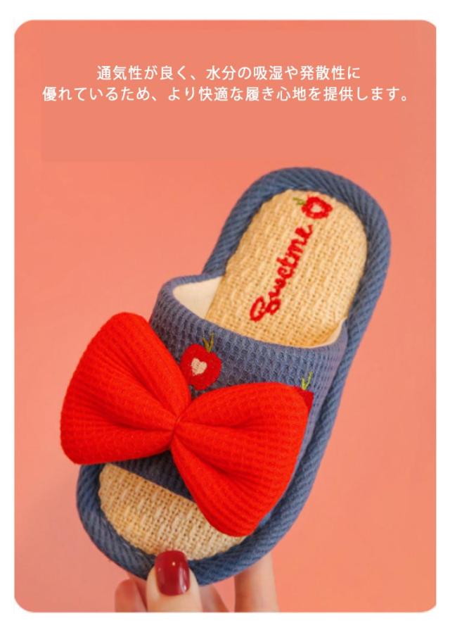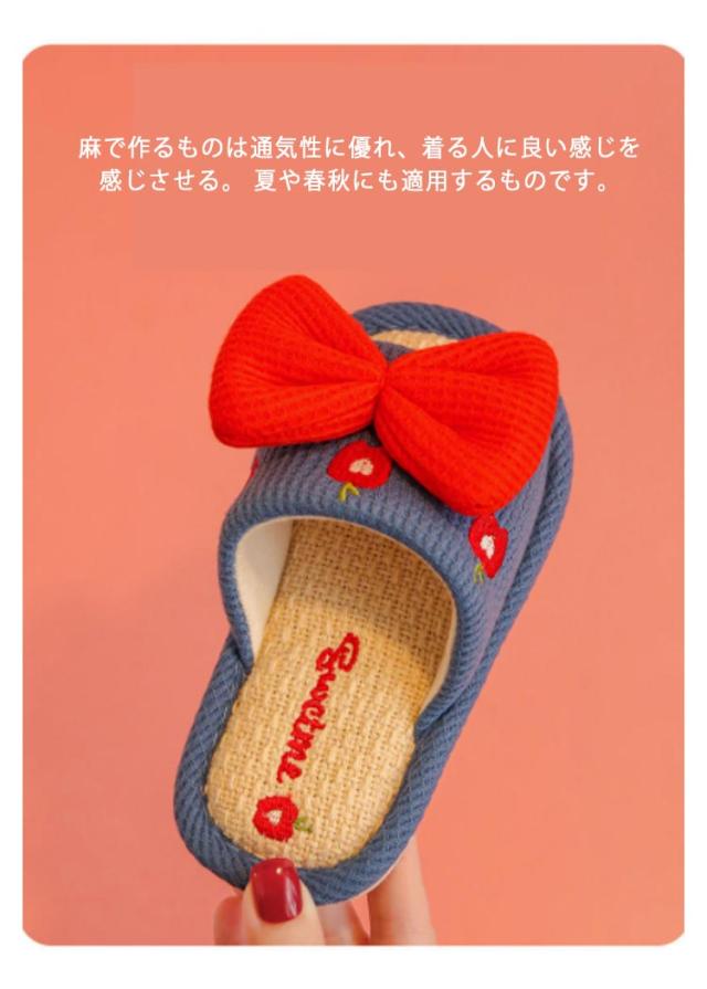 子供 キッズ スリッパ 春用 夏用 子供 女の子 リボン 子ども ルームシューズ 子供用 スリッパ 秋冬 麻 リネン 綿麻 洗える 可愛い 室内 室内履き ギフト 小学生 中学生 お洒落 送料無料