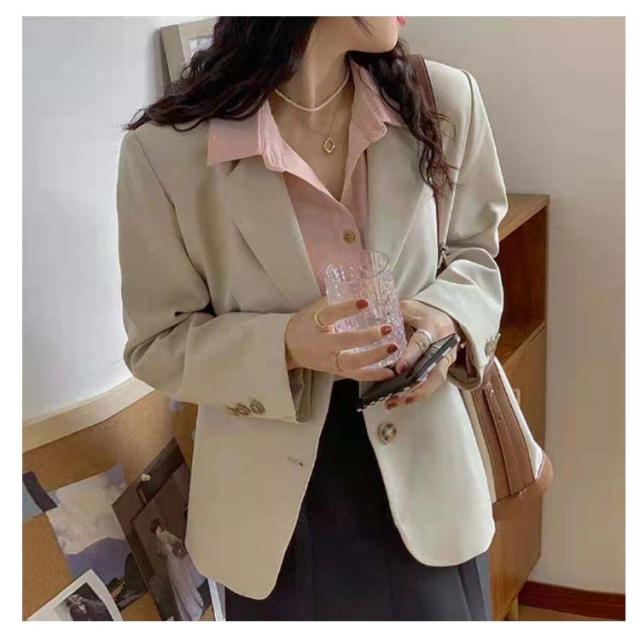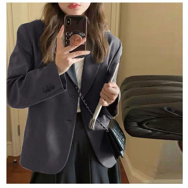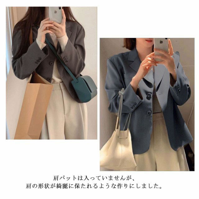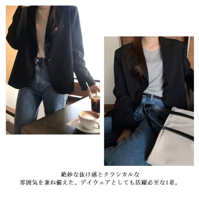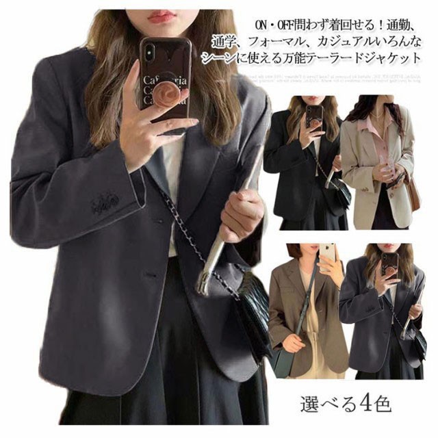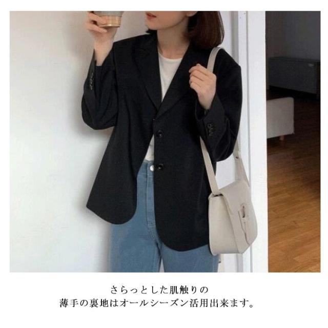 【送料無料】テーラードジャケット 長袖 スーツ生地 ショート丈 レディース 夏 薄手 2B 韓国風 袖口ボタン 通勤 通学 春 秋 スーツ ジャケット 女子 学生服 制服 フォーマル 高校生 裏地付き 20代 30代 40代 50代
