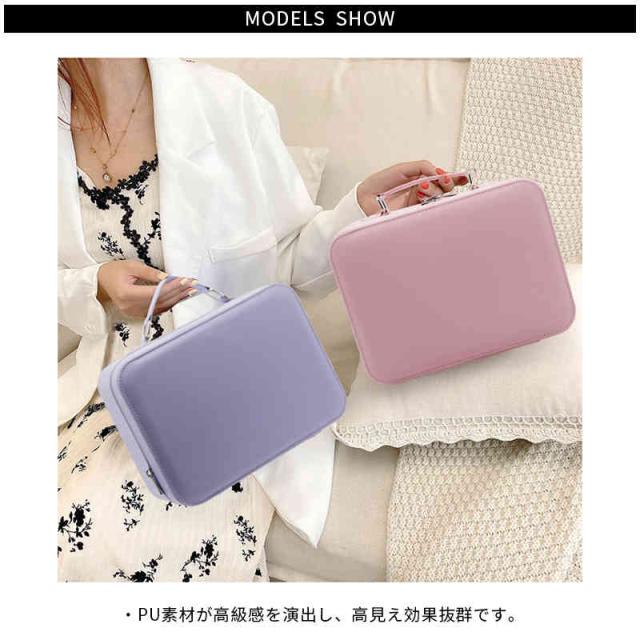 | メイク道具をきちんと仕分けできる本格派のメイクボックス! ・中はトレイで仕切りがあるので整理がしやすくなっています。鏡も付いていてコスパgood! ・メイク用品が多くなりがちな女子に嬉しい大容量!深さもあるので化粧水なども入れられます。 ・PU素材が高級感を演出し、高見え効果抜群です。 ・カラーが可愛い!プレゼントにも最適です! | |