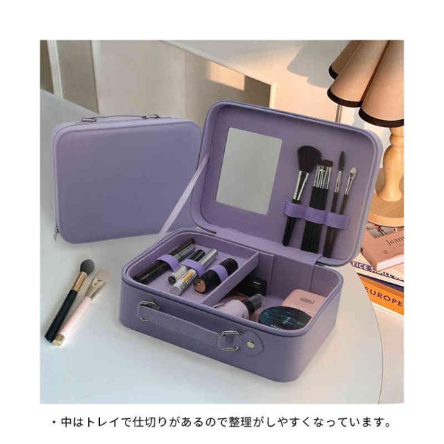 メイクボックス 化粧ボックス メイク入れ 化粧ポーチ コスメボックス 鏡付き トレイ付き コスメケース メイクポーチ コスメポーチ 手提げ コスメ収納 ブラシ収納付き メイク道具 化粧品 大容量 多機能 仕切り