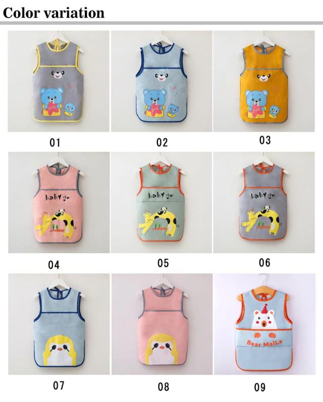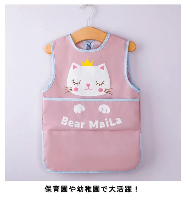 ベビー用エプロン ポケット付き ノースリーブ 食べこぼしガード 袖なしタイプ 防水食事用エプロン 動物 新生児 幼児 スタイ ベビーエプロン 赤ちゃん 男の子 女の子