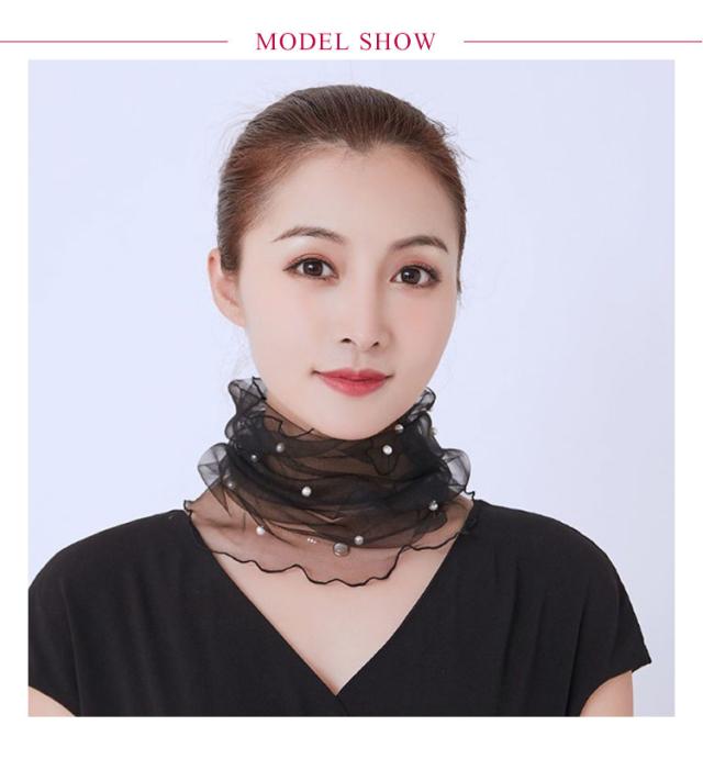 ネックカバー レディース チュール パール シワ隠し 日除け 日焼け対策 ネックウォーマー 日焼け防止 首元隠し全12色