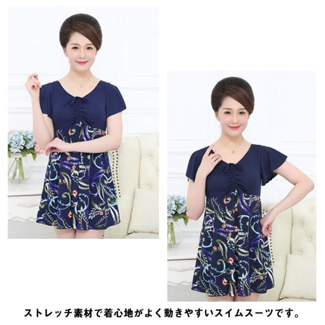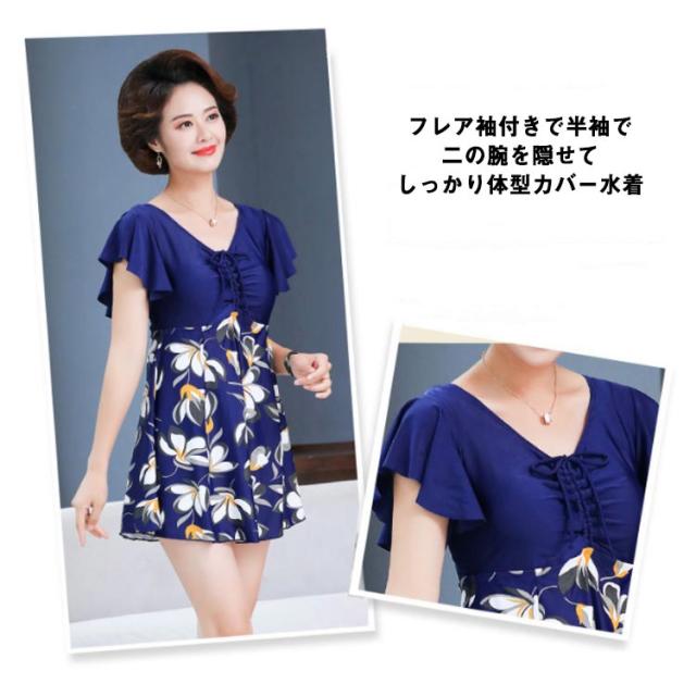 送料無料 オールインワン 一体型 花柄 袖付き フレア半袖 レディース フィットネス水着 大きいサイズ ぽっちゃり 水着 ワンピース 体型カバー タンキニ かわいい シンプル 水陸両用 スイミング 30代 40代 50代 60代 オトナ女子 ママ 水着