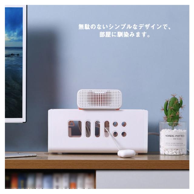 | シンプルながらスタイリッシュなケーブルボックス。 側面には通気口を施し、熱がこもりにくいように設計されています。 蓋付きでホコリが溜まりにくく、蓋の上に小物を置くこともできます。 無駄のないシンプルなデザインで、部屋に馴染みます。 | |