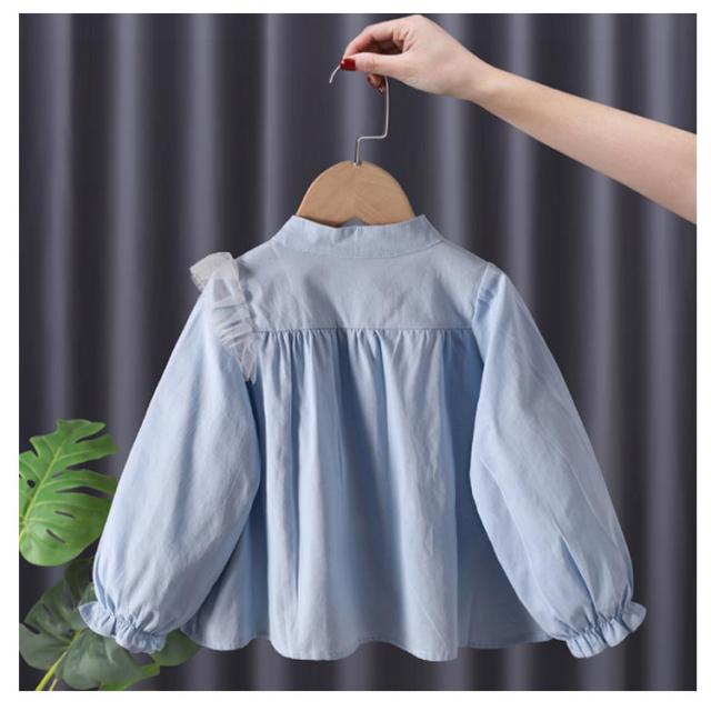 送料無料 ブラウス 長袖 子供服 キッズ ベビー トップス フリル Aライン フレア かわいい ガーリー 無地 単色 着まわし ヘビロテ 女の子 女児 80 90 100 110 120 130cm 洋服 綿 赤ちゃん 姉妹コーデ 子ども服