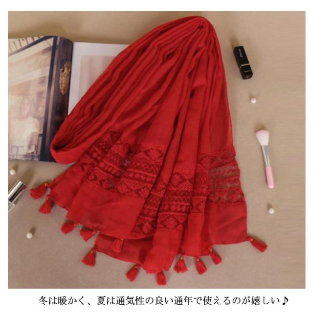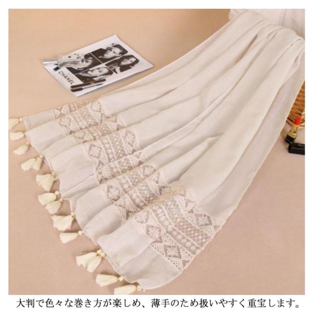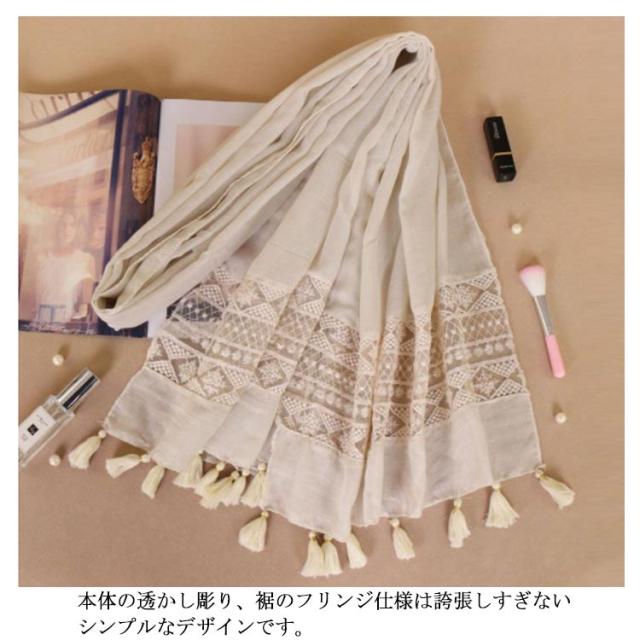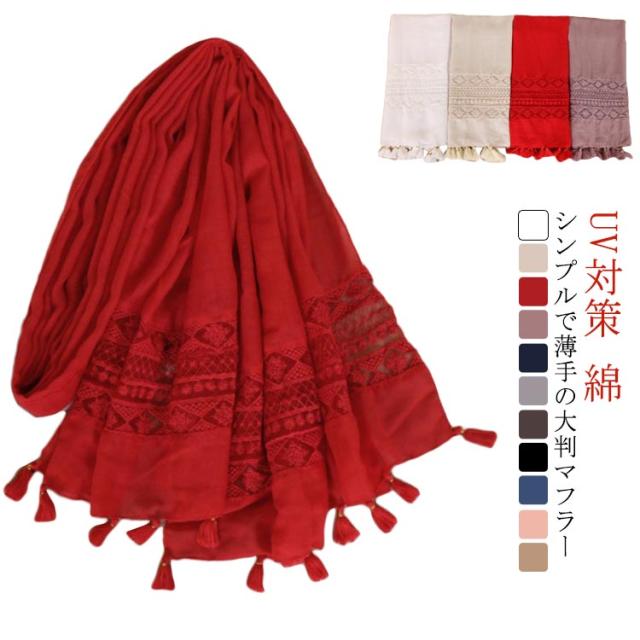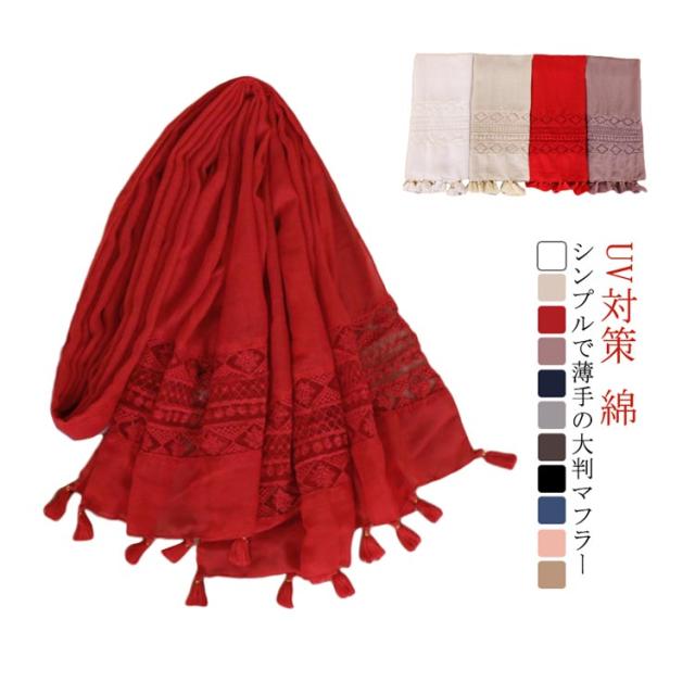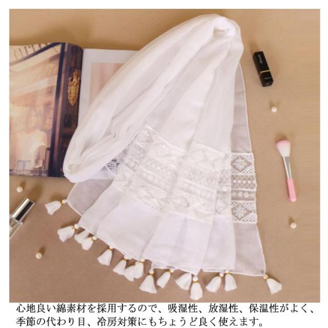 【送料無料】ストール 大判 薄手 マフラー レディース スカーフ おしゃれ きれいめ UV対策 紫外線対策 日焼け防止 レース ロング コットン 綿 オールシーズン アクセサリー 舞台 冷房対策 通勤 シンプル エレガント 母の日 敬老の日 ギフト プレゼント