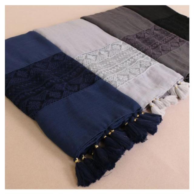 | シンプルで薄手の大判マフラー 心地良い綿素材を採用するので、吸湿性、放湿性、保温性がよく、季節の代わり目、冷房対策にもちょうど良く使えます。 大判で色々な巻き方が楽しめ、薄手のため扱いやすく重宝します。 本体の透かし彫り、裾のフリンジ仕様は誇張しすぎないシンプルなデザインです。 冬は暖かく、夏は通気性の良い通年で使えるのが嬉しい♪ | |