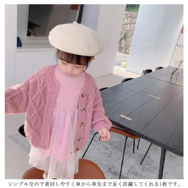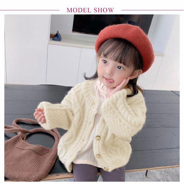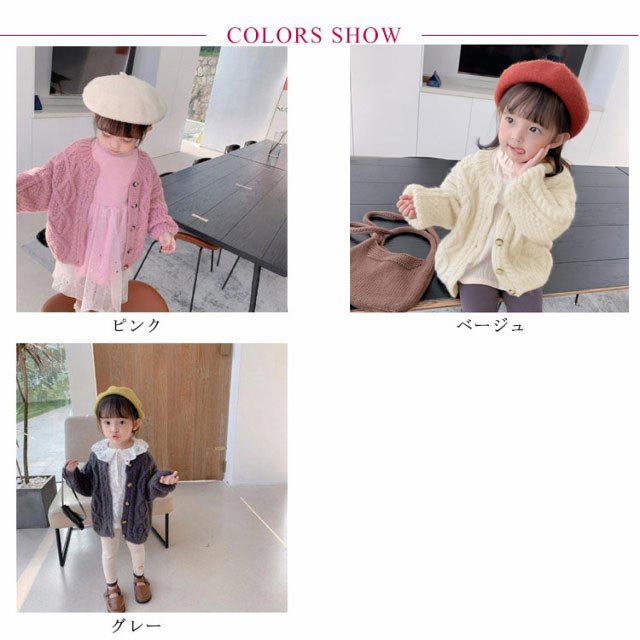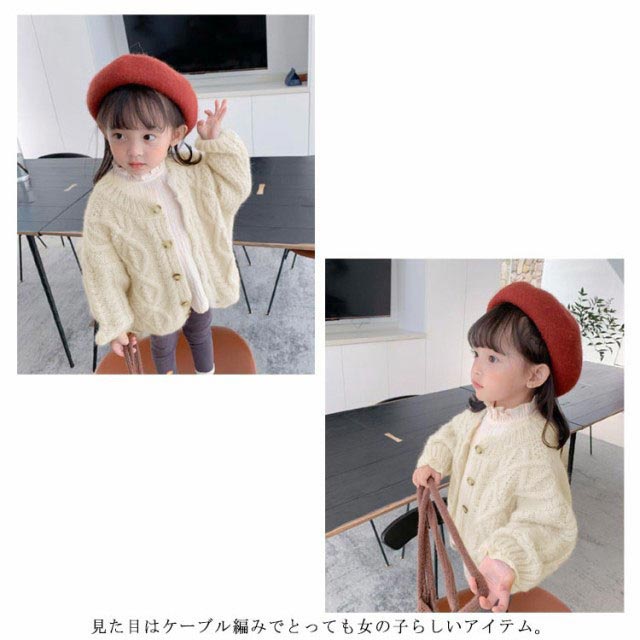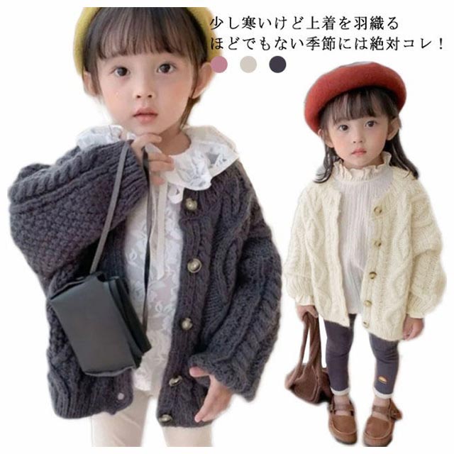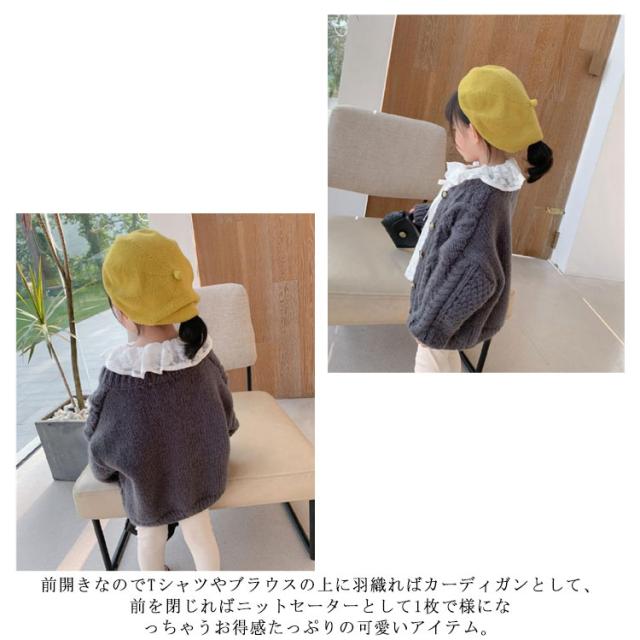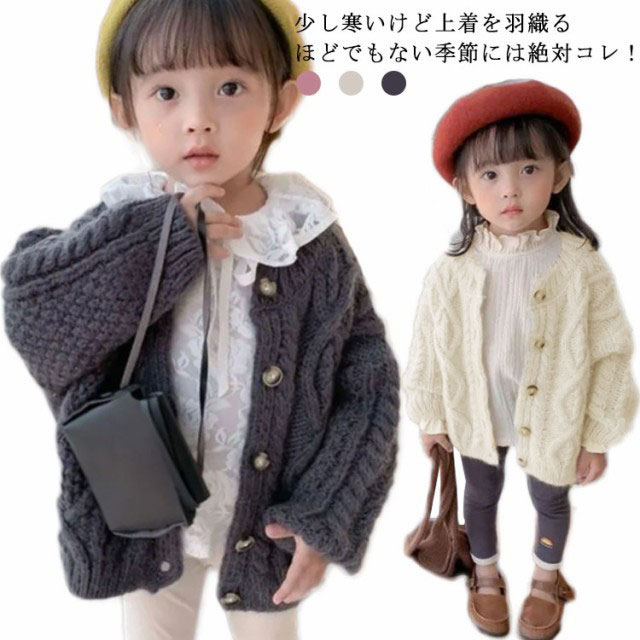 カーディガン ベビー 女の子 キッズ 長袖 ケーブル編み ニット セーター ボタン 前開き 長袖カーディガン 防寒 暖かい おしゃれ 可愛い 普段着 通学着 春 秋 全3色