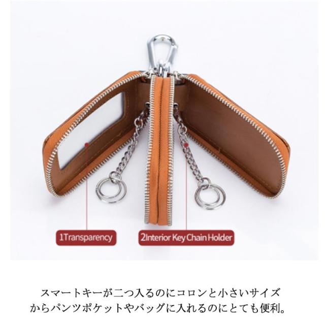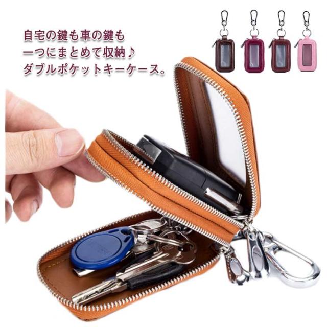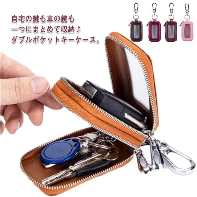 キーケース スマートキー ダブルキーケース クリア窓付 鍵 収納ケース オシャレ ダブルポケット メンズ レディース キーケース
