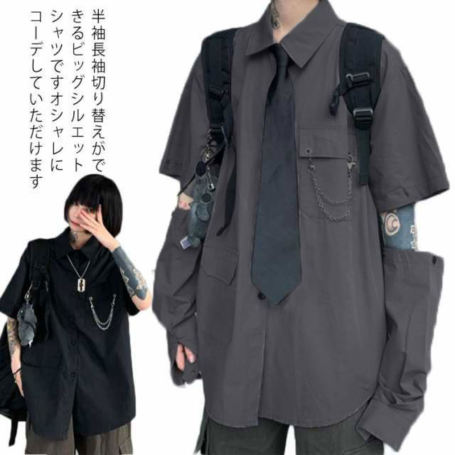 | 半袖長袖切り替えができるビッグシルエットシャツですオシャレにコーデしていただけます ネクタイ付きでフォーマル感もプラス デイリーからダンスウェアやライブ、コンサート、フェス用まで幅広く使える1枚です 半袖長袖切り替えデザインで片腕だけ半袖、片腕だけ長袖、なんて個性的なファッションにもできます。夏は半袖、冬は長袖とオールシーズンお使いいただけます ボトムスは何を合わせてもクールに決まるので 普段着にもオススメです | |