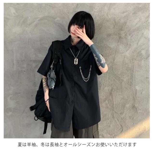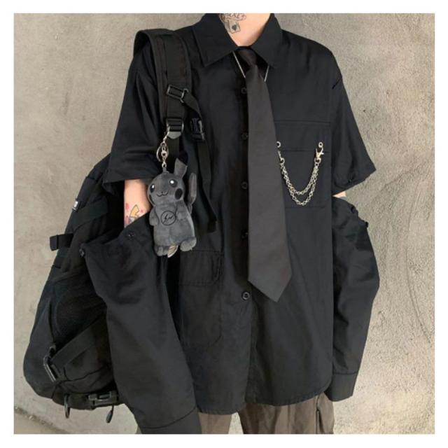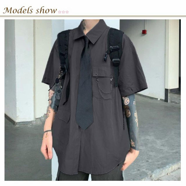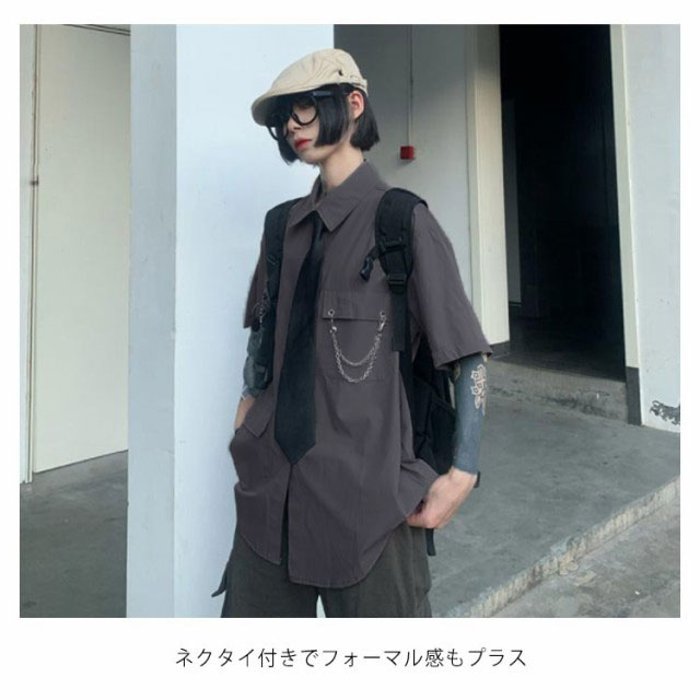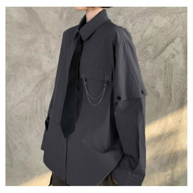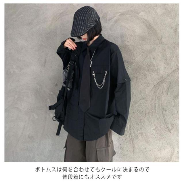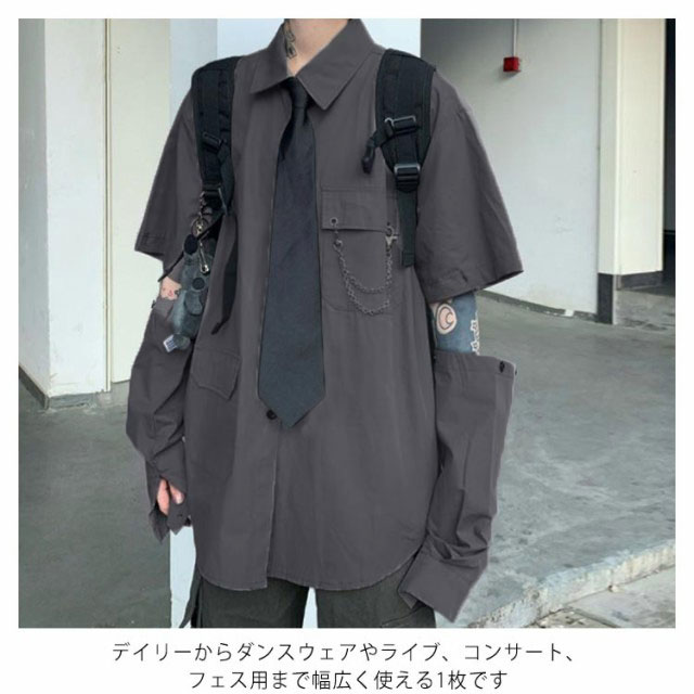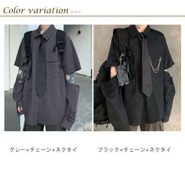 メンズ シャツ メンズシャツ 春秋 薄手 3点 飾りチェーン付き ネクタイ付き 半袖 長袖 袖取り外し可能 男女兼用 韓国 トップス ステージ衣装 ヒップホップ ダンス衣装 ストリート ファッション モード系