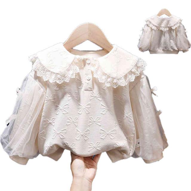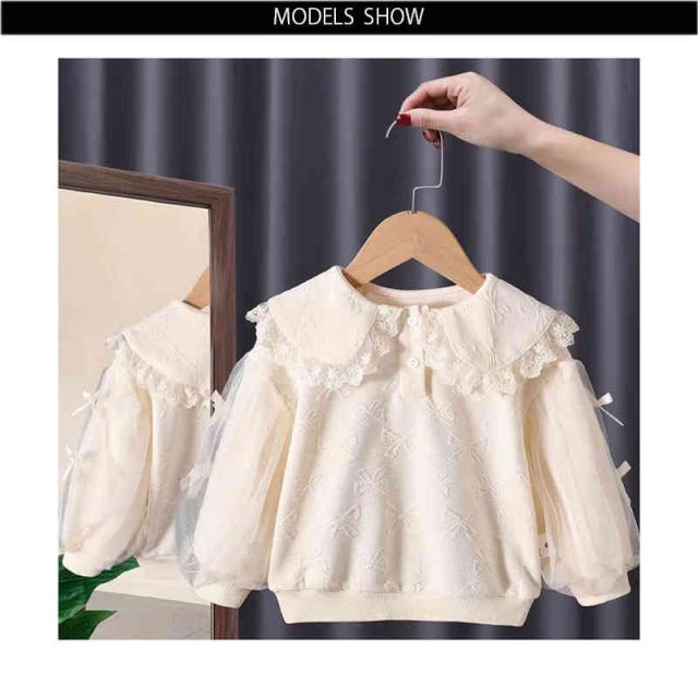 ブラウス 長袖 キッズ 春秋 おしゃれブラウス チュールブラウス レースブラウス 長袖 トップス 子供服 女の子 無地 レース フリル プルオーバー おしゃれ かわいい お出かけ 普段着 ガールズ 女児 シャツブラウス 無地 シンプル カジュアル おしゃれ 送料無料