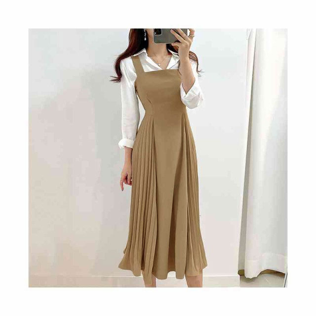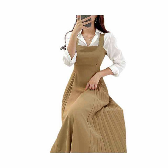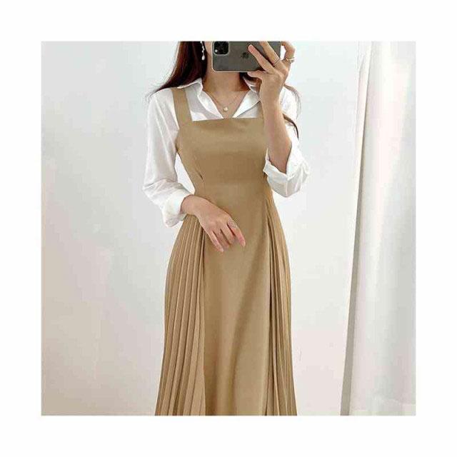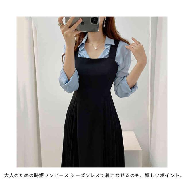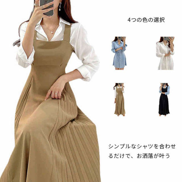ジャンパースカート レディース ワンピース 秋 オールインワン ワンピ ノースリーブ レイヤード 重ね着 ナチュラル シンプル 大人 カジュアル 体型カバー プリーツ フリル ママ 服 春 夏 秋 20代 30代 40代 50代