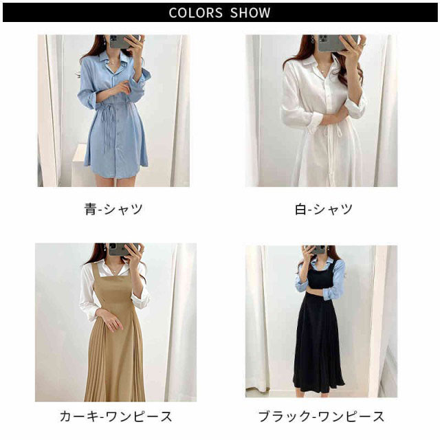 | 色 | 青-シャツ 白-シャツ カーキ-ワンピース ブラック-ワンピース |