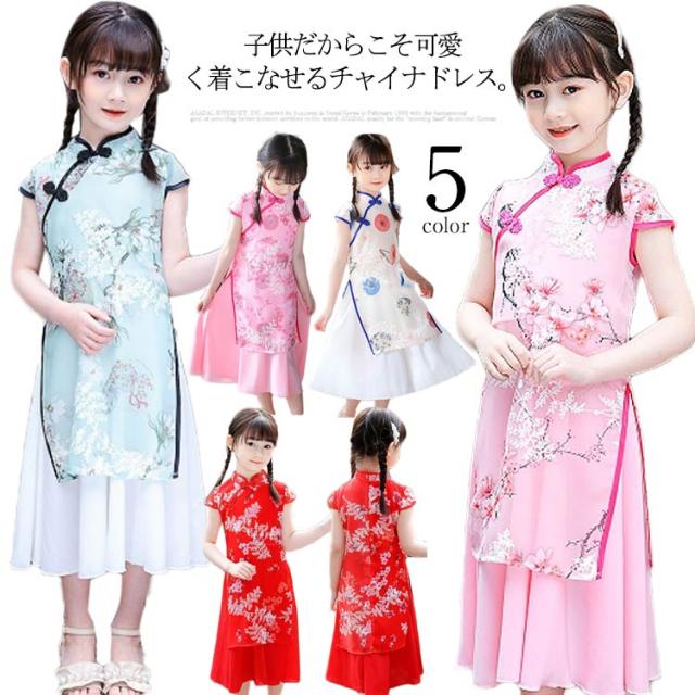 チャイナドレス 子供 キッズ チャイナドレス ロング チャイナ服 ワンピース 子供ドレス 女の子 花柄 子供服 パーティードレス 半袖 夏 漢服 中華風 春秋 キッズドレス ハロウィン 卒業式 発表会 結婚式 可愛い 110 120 130 140 150 160 送料無料