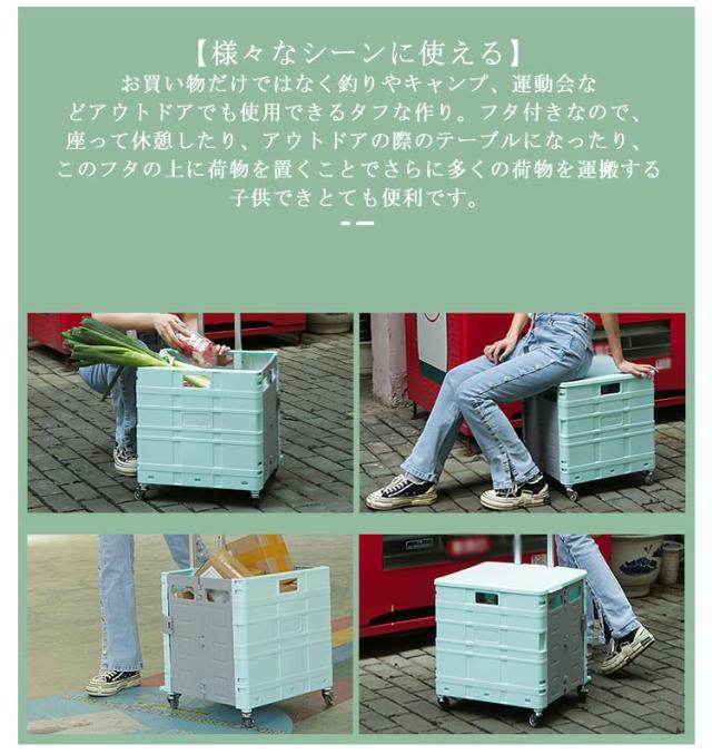 ショッピングカート キャリーカート 折りたたみ式 フタ付き 360°回転 4輪静音キャスター 買い物カート 軽量 台車 コンテナカート 運動会 アウトドア 買い物 運搬 釣り BBQ 海水浴 腰掛け 持ち運びやすい 大容量75L 耐荷重60kg