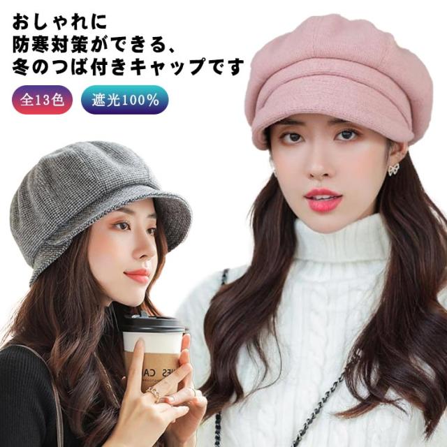 全13色! キャスケット レディース 秋冬 帽子 キャップ 防寒 秋 冬 スッピン隠し あったか つば付き ウール混 深め ぼうし すっぴん 小顔効果 大きいサイズ 保温 自転車 完全遮光 遮光100% UVカット ワークキャップ ゆったり 外出 送料無料