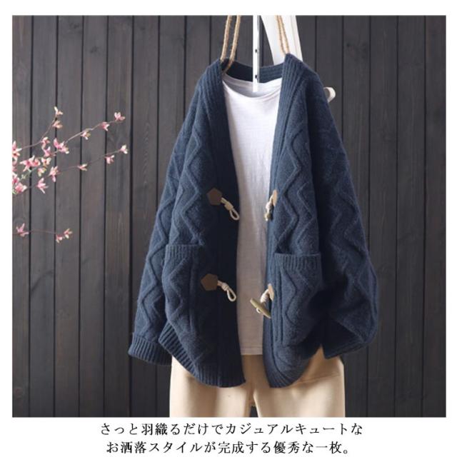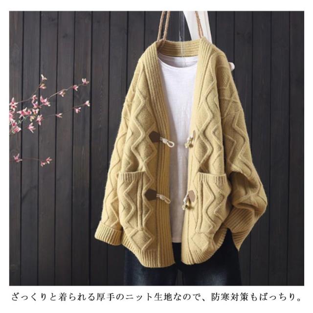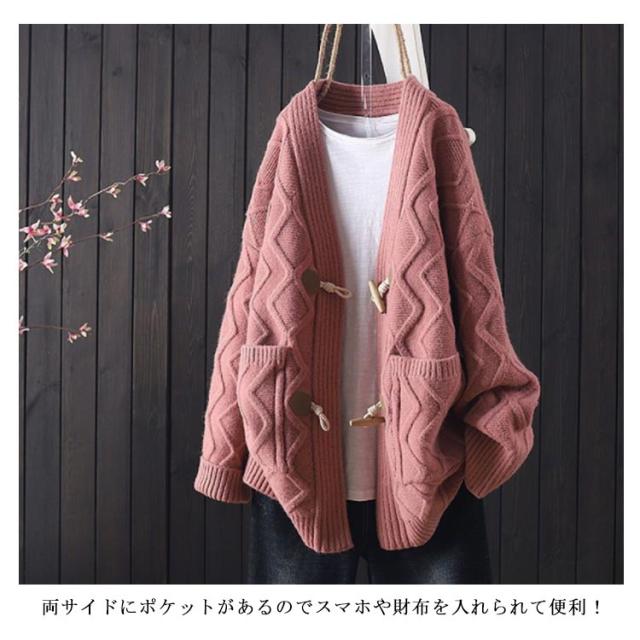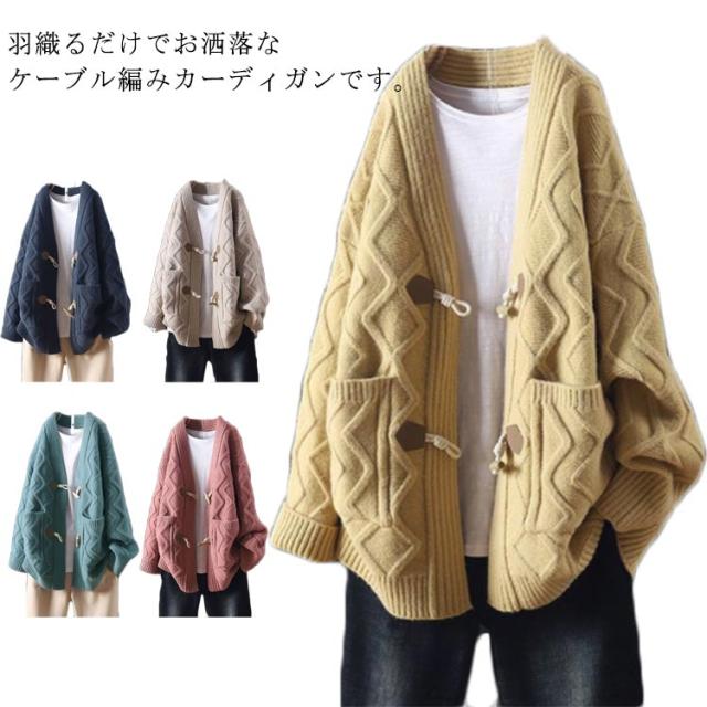 レディース ニットカーディガン ケーブル編み コーディガン 秋冬 防寒 アウター フェミニン おしゃれ カーディガン 大きいサイズ ゆったり リラックス感 ポケット付き 羽織り 普段使い カジュアル 送料無料