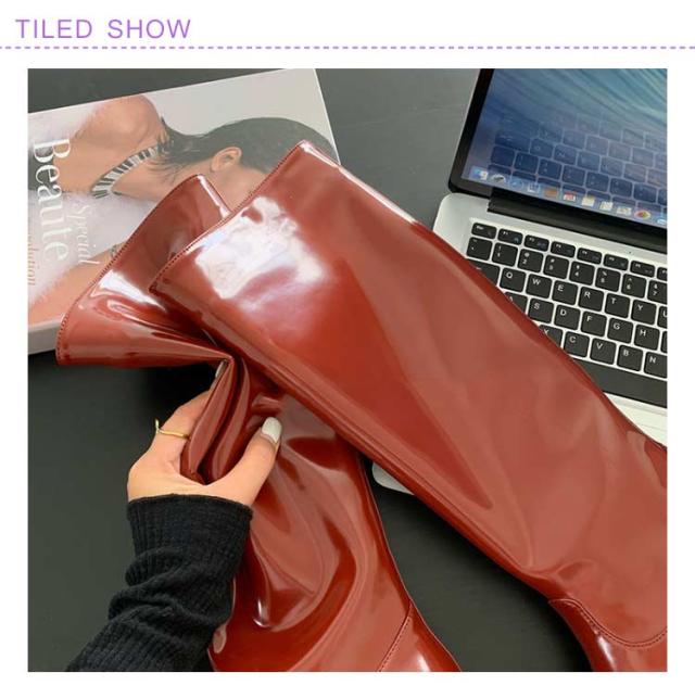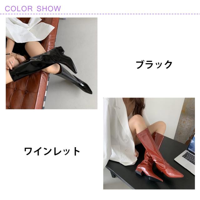 ブーツ ロング ロングブーツ レディース ニーハイブーツ エナメル 革 柔らかい コスプレ ダンス 衣装 膝下 膝丈 22.5cm 23cm 23.5cm 24cm 24.5cm チャンキーヒール