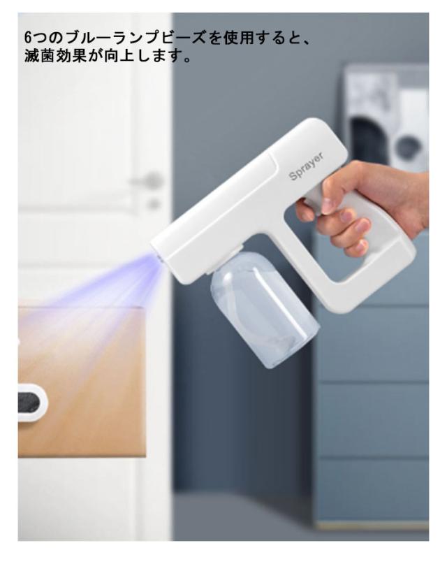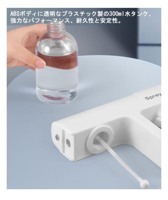 送料無料 アルコール USB充電式 ナノスプレーガン 噴射機 自動噴霧器 ミストガン 消毒スプレー ナノアトマイザー 電動 電動スプレー スプレーガン 300ml ブルーライト除菌機能付 消毒除菌 飲食店 ナノレベル ミスト化 室内 除菌