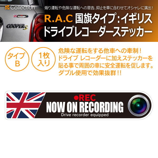 【在庫限】R.A.C ドライブレコーダー ステッカー 国旗タイプ(イギリス/ユニオンジャック: B) サイズ:幅13.8cmx高2.7cm 内容:1枚入(商品コード:501057)