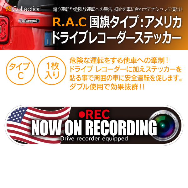 【在庫限】R.A.C ドライブレコーダー ステッカー 国旗タイプ(アメリカ: C) サイズ:幅14.0cmx高3.2cm 内容:1枚入(商品コード:501069)