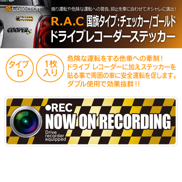 【在庫限】R.A.C ドライブレコーダー ステッカー 国旗タイプ(チェッカー: G) サイズ:幅14.0cmx高4.0cm 内容:1枚入(商品コード:501083)
