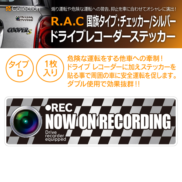 【在庫限】R.A.C ドライブレコーダー ステッカー 国旗タイプ(チェッカー: S) サイズ:幅14.0cmx高4.0cm 内容:1枚入(商品コード:501084)