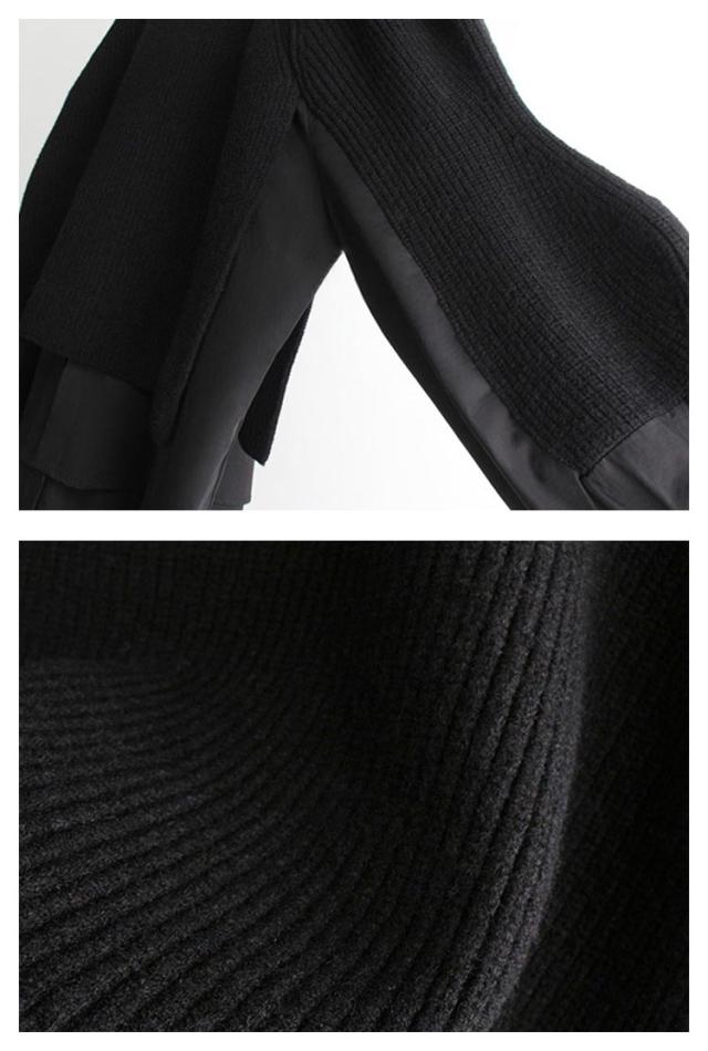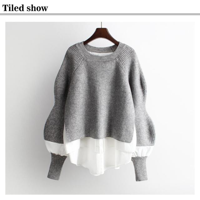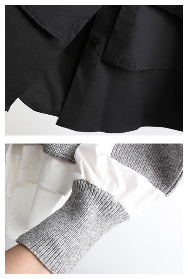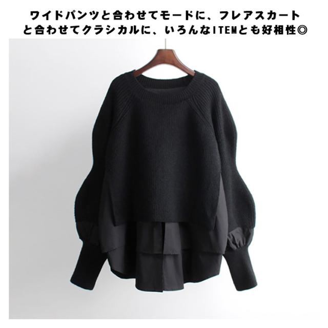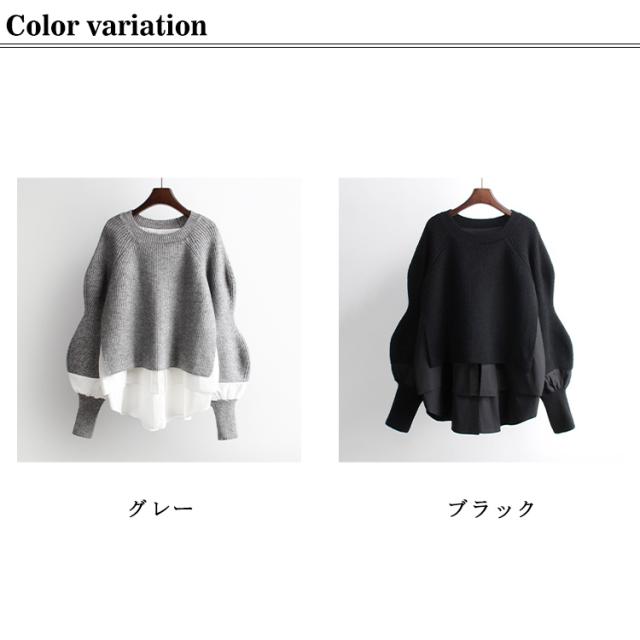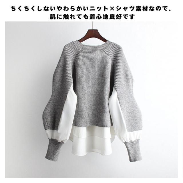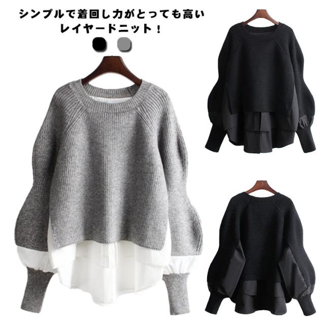 レイヤード ニットトップス レディース セーター ニット プルオーバー ニットパーカー クルーネック 異素材ドッキング フェイクセット 重ね着風 ニットトップス 厚手 春 秋 冬