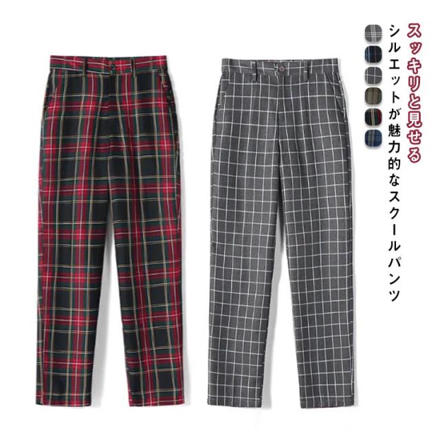スクールパンツ チェック パンツ 男子 高校生 学生 中学生 制服 ロングパンツ メンズ スクール スラックス 通学 学生服 男の子 子供服 長ズボン ボトムス キッズ ジュニア 通学ズボン 男子制服 DK制服 フォーマル 受験 通学 発表会 結婚式 冠婚葬祭 入学 卒業 送料無料
