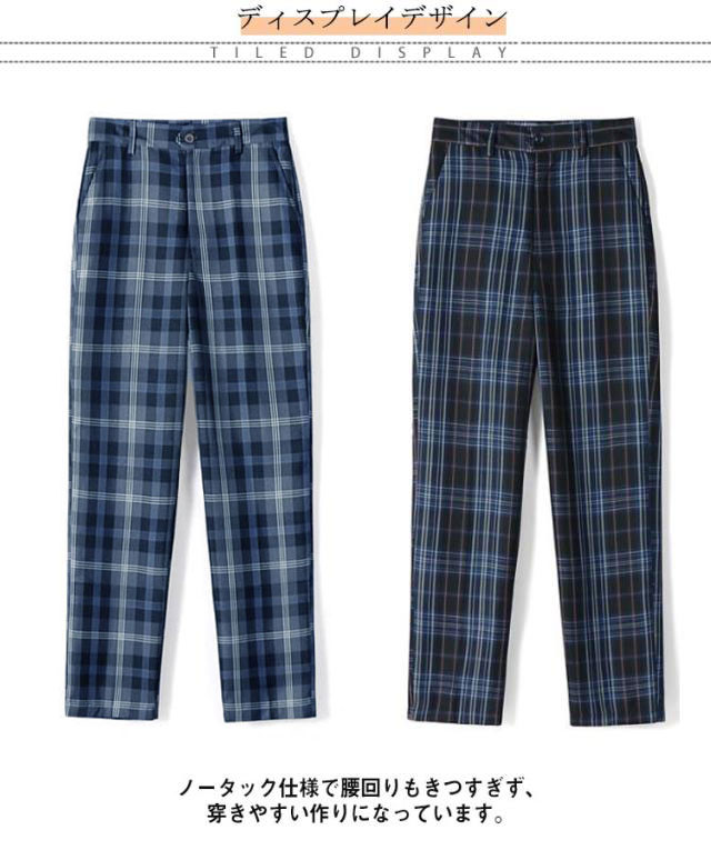 | スッキリと見せるシルエットが魅力的なスクールパンツ。 ノータック仕様で腰回りもきつすぎず、穿きやすい作りになっています。 ローファー、スニーカーどちらも相性◎ さまざまなスタイルに合わせられるよう、色・柄の種類が豊富! | |
