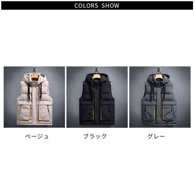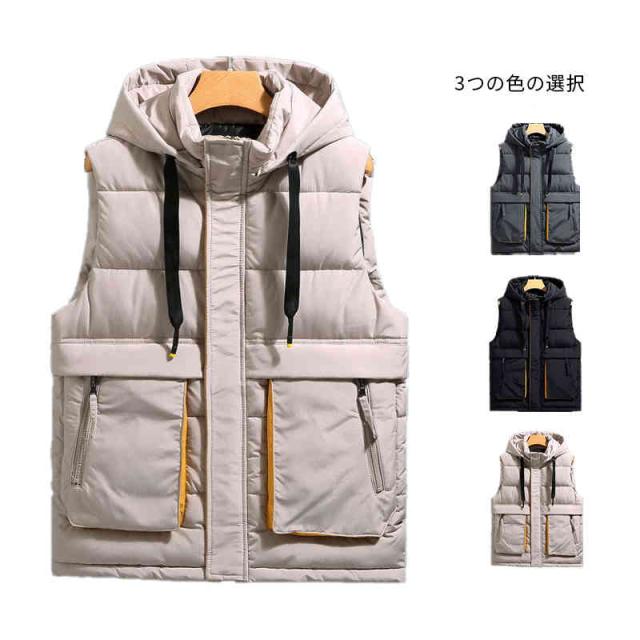 ダウンベスト メンズ 中綿ベスト ダウンコットン チョッキ ライトダウン ノースリーブジャケット フード付き 取り外し可能 軽量 厚手 防寒 防風 保温 冬服 アウトドア カジュアル お洒落 カッコイイ 男性 普段着 アウトドア 通勤 通学 秋 冬 大きいサイズ 送料無料 L-6XL