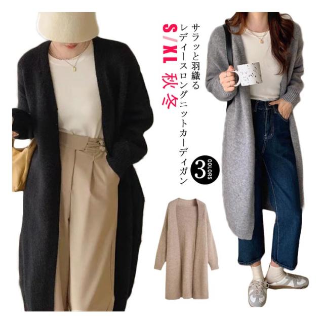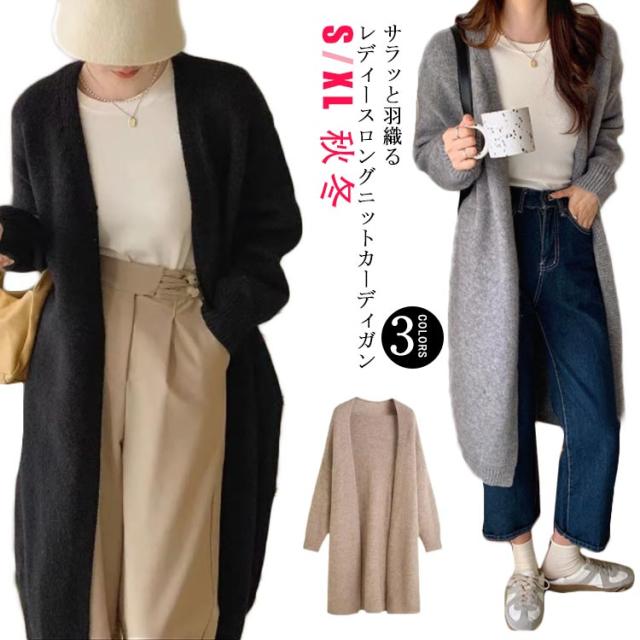 【送料無料】ロングカーディガン 秋冬 レディース ニット ロング丈 ゆったり 羽織り おしゃれ きれいめ 洗える 柔らか ガウンカーディガン ニットカーディガン 体型カバー 無地 シンプル カジュアル 重ね着 通勤 通学 ギフト プレゼント