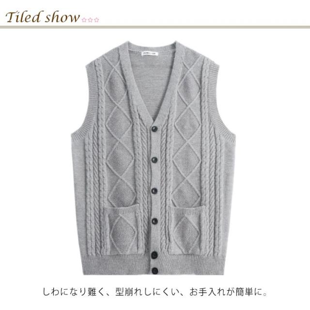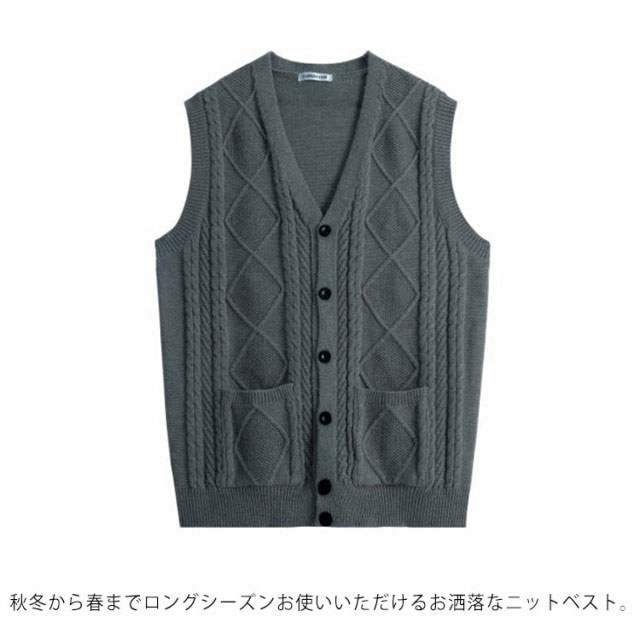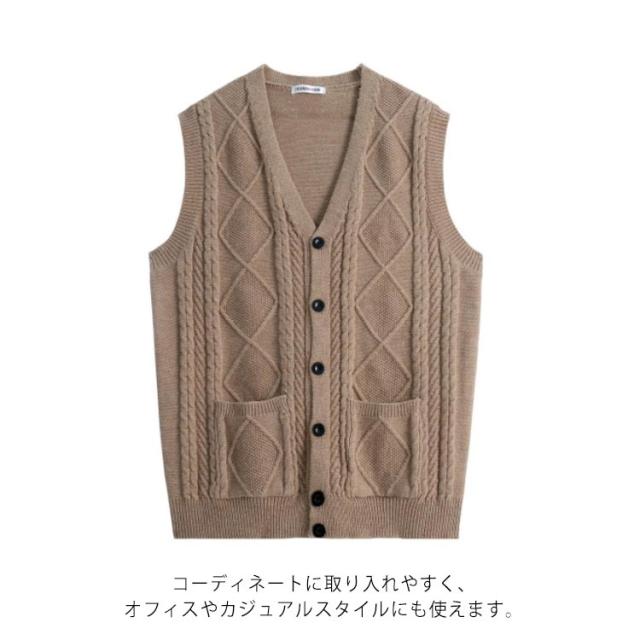 メンズ ベスト トップス ビジネス 前開き ボタン ポケット付き 無地 ケーブル編み ニットベスト 洗濯可能 秋冬 誕生日 大きいサイズ ジレ チョッキ 防寒 仕事 フォーマル ゴルフ カジュアル 送料無料
