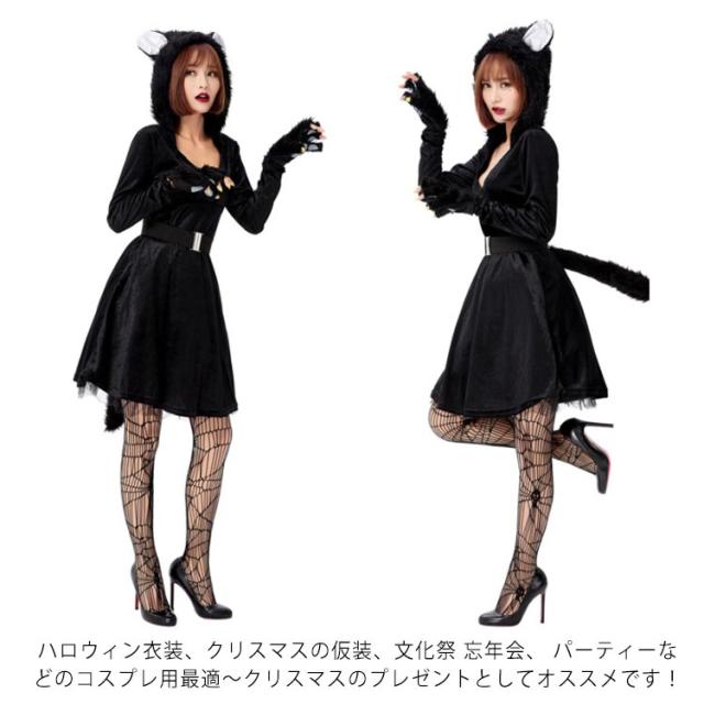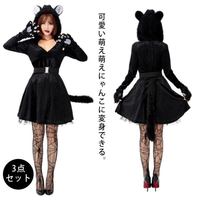 黒猫 コスプレ ネコ 猫 仮装 レディース ハロウィン衣装 大人用 動物 コスプレ キャラクター コスチューム 3点セット セクシー ハロウイン コスプレ衣装 仮装用 ワンピース イベント パーティー Halloween 舞台 演出服