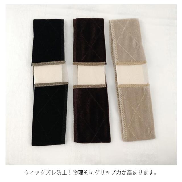 | 肌触り柔らかなベロア素材のウィッグ固定バンド。 ウィッグズレ防止!物理的にグリップ力が高まります。 サイズ調節が出来るので、頭にピッタリフィットします。 簡単着装、医療中の方も愛用されています。 | |