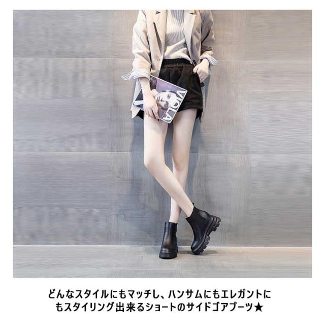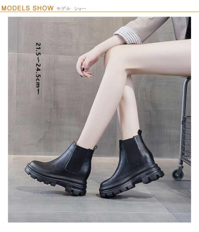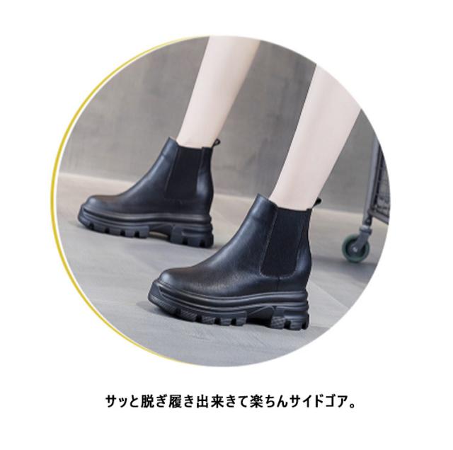 ブーツ レディース サイドゴアブーツ ショートブーツ 牛革 本革 ショートブーツ 厚底 ぺたんこ 歩きやすい ヒール8cm 身長アップ フラット コスプレ 大きいサイズ ハンサムシューズ 疲れない ブーツ 厚底 ブーツ おしゃれ 黒 ブラック 21.5〜24.5cm