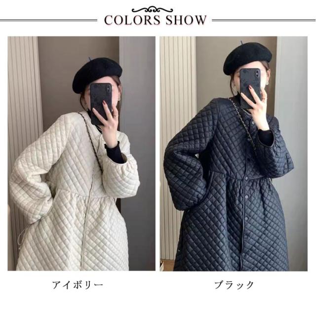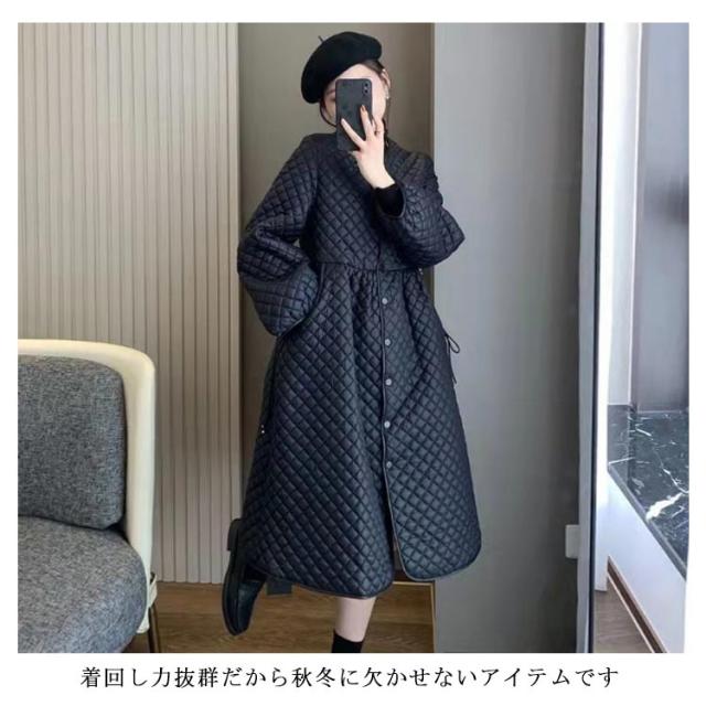 キルティング オーバー コート ジャケット アウター トップス レディース ロング ロングコート モッズコート ミリタリーコート 送料無料 ミリタリー スカート ワンピース 冬服 羽織 中綿入り 長袖 ジャンパー インナージャケット ゆったり 防寒 軽い 暖かい 秋 冬