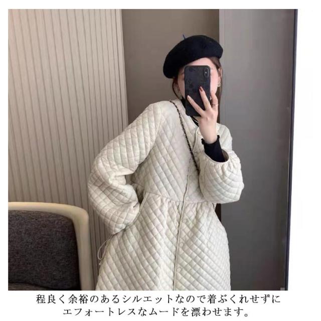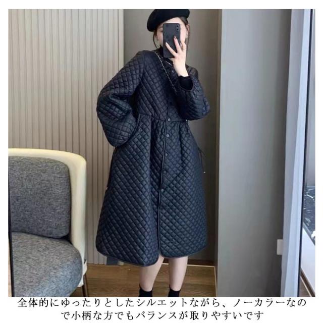 | 大人可愛いキルティングワンピース。 中綿入りのキルティング素材だから、ふんわり暖かいです。 着回し力抜群だから秋冬に欠かせないアイテムです 全体的にゆったりとしたシルエットながら、ノーカラーなので小柄な方でもバランスが取りやすいです 程良く余裕のあるシルエットなので着ぶくれせずにエフォートレスなムードを漂わせます。 | |
